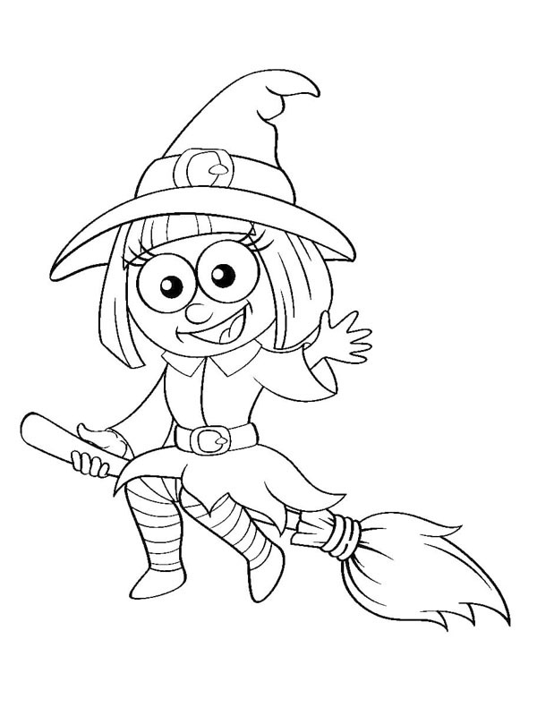 Letící čarodějka na koštěti omalovánka